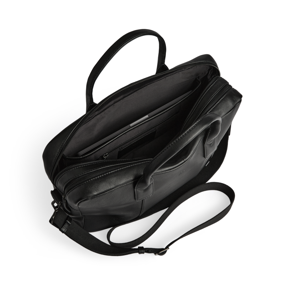 Elegant og funksjonell jobbveske i mykt kalveskinn. Vesken kombinerer klassisk design med praktiske detaljer som gjør den ideell til både jobb og reise.