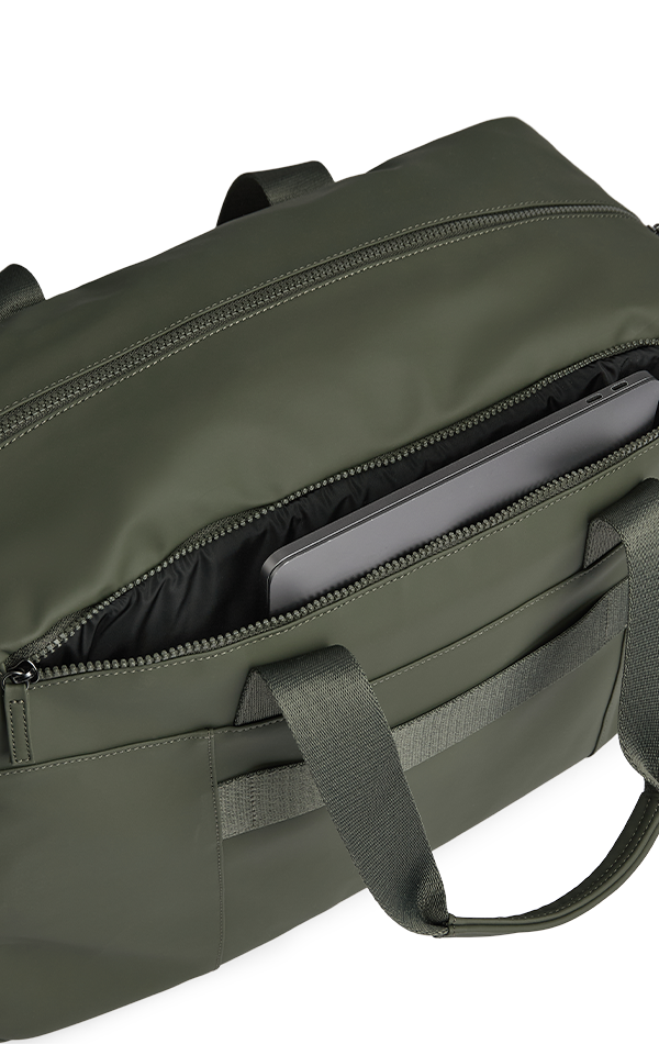 Weekendbagen har et separat datarom med polstring for ekstra beskyttelse. Lommen åpnes fra toppen av bagen, slik at du enkelt kan ta PC-en inn og ut uten å åpne hovedrommet.