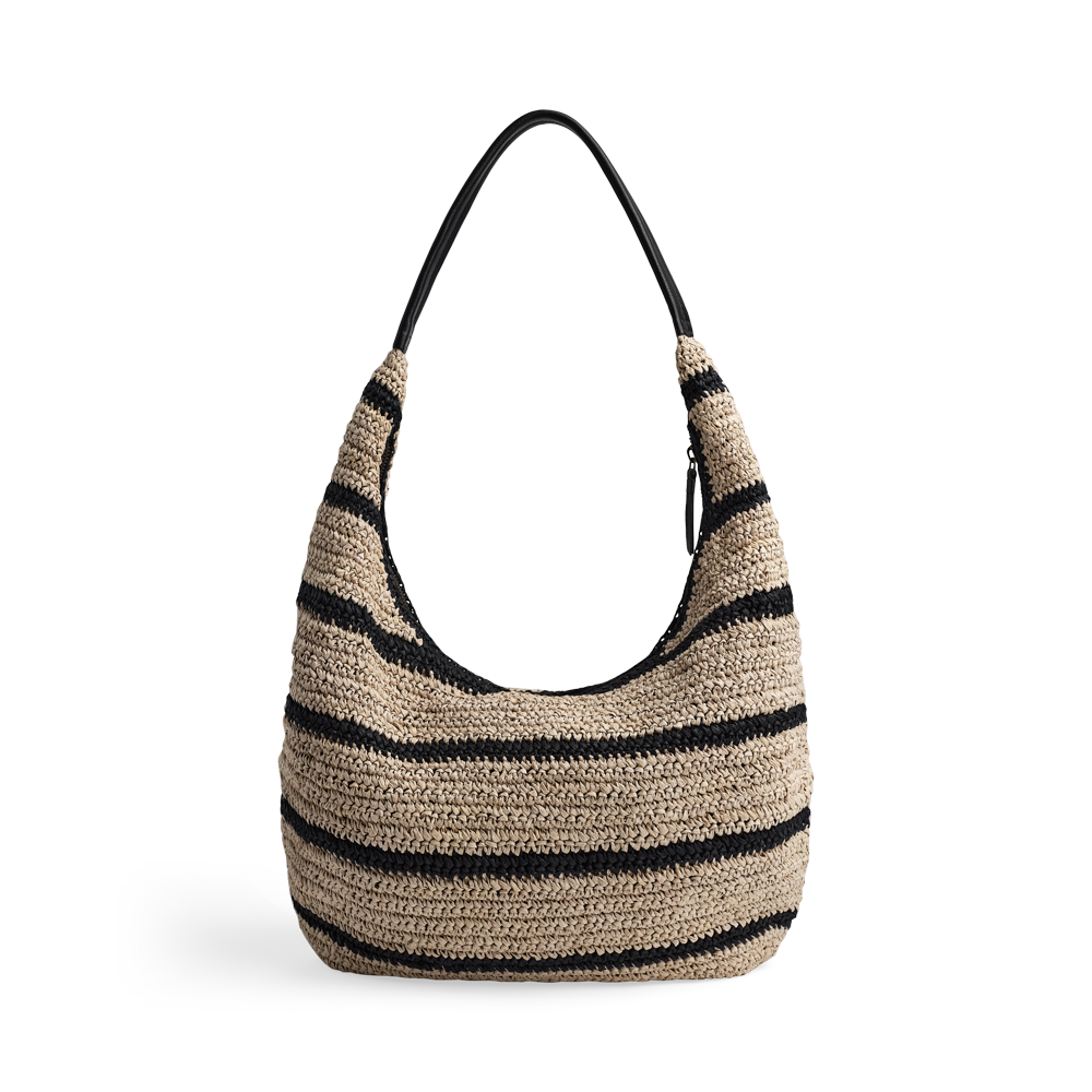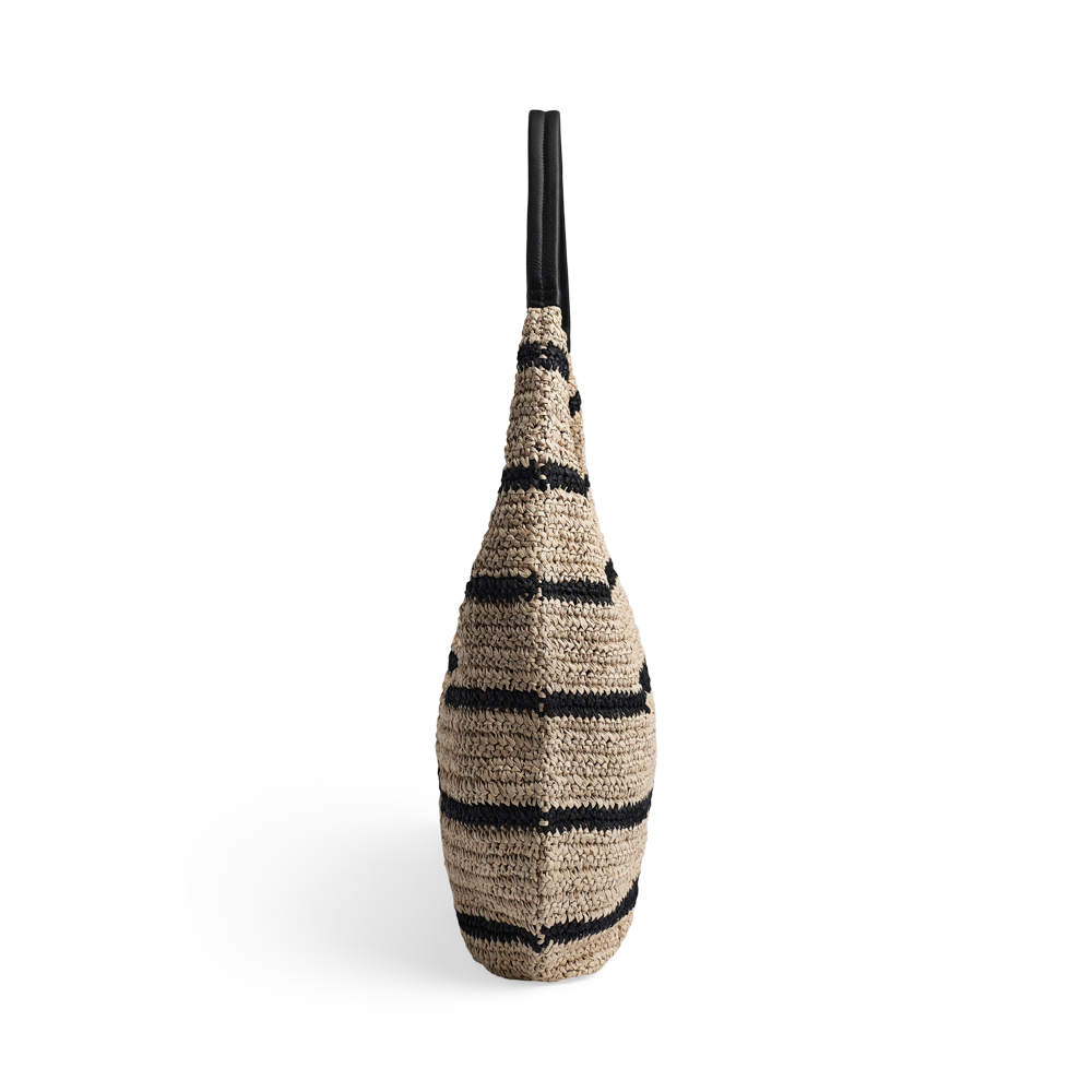 En lett og romslig veske med flettet struktur og elegant skulderrem. Det myke designet og den gode størrelsen gjør den ideell til både hverdagsbruk og sommerlige utflukter.