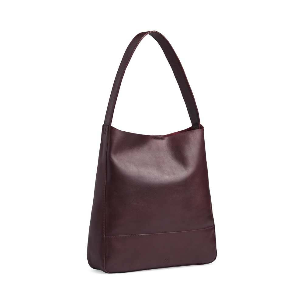 En rummelig hobo-veske i vegetabilsk skinn med naturligt udtryk.