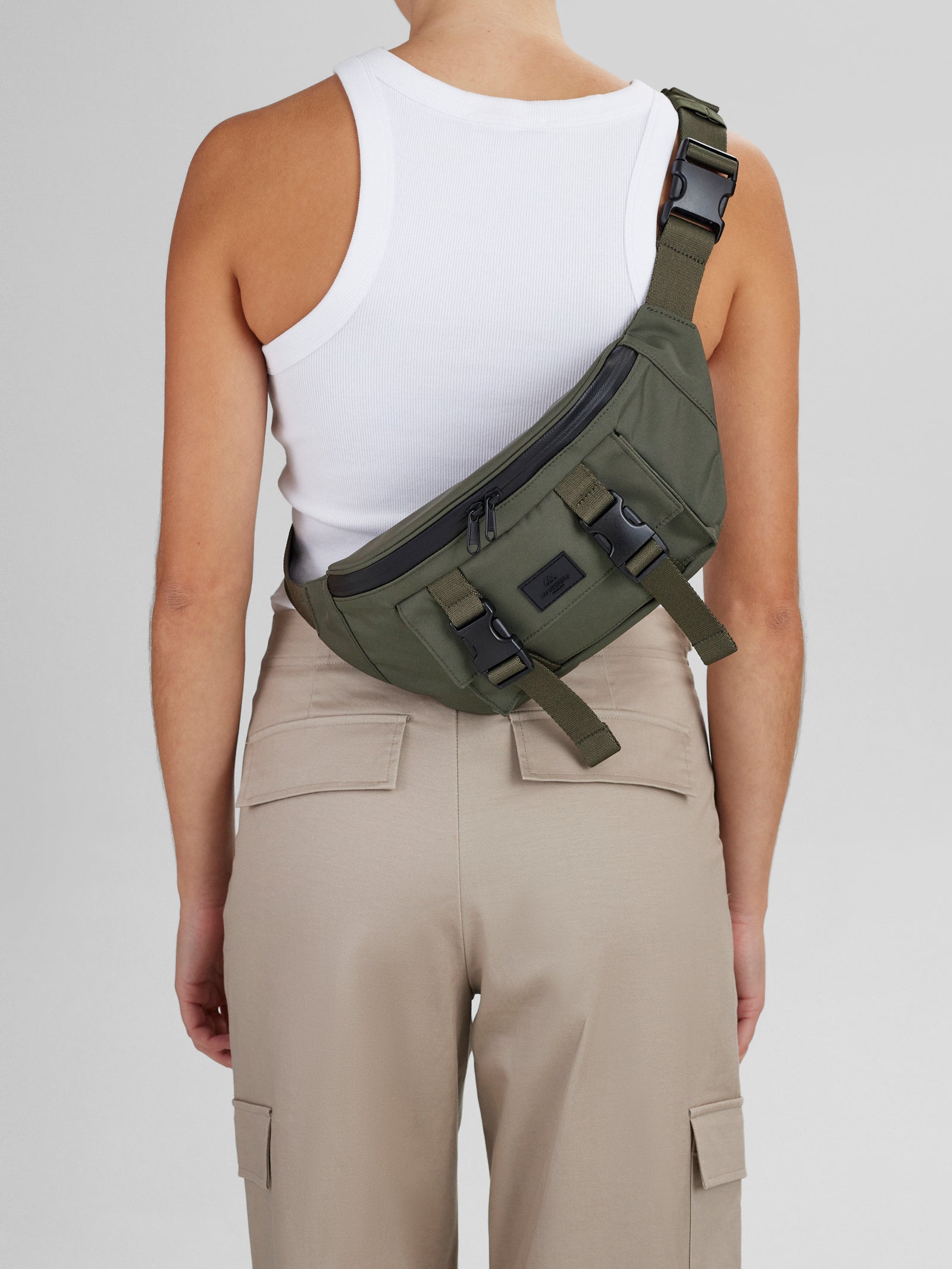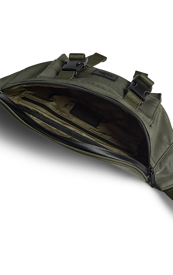 Lukkes med toveis glidelås. Glidelåsen er vanntett.